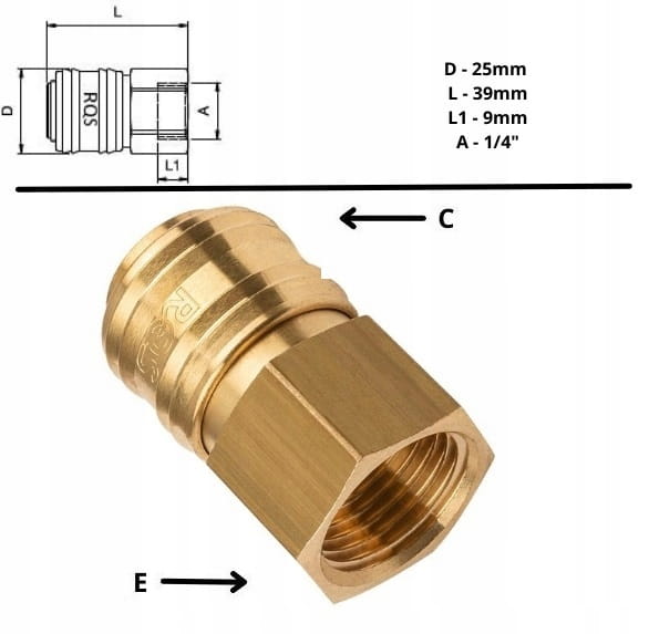 - Strona C - Standardowe szybkozłącze stosowane w większości narzędzi pneumatycznych i węży