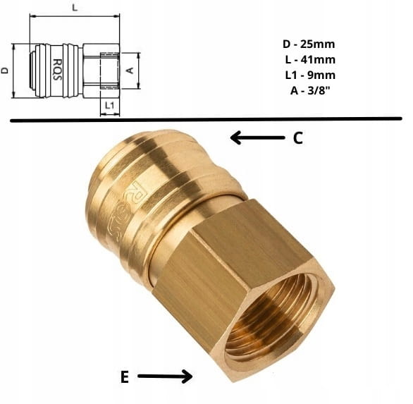 - Strona C - Standardowe szybkozłącze stosowane w większości narzędzi pneumatycznych i węży