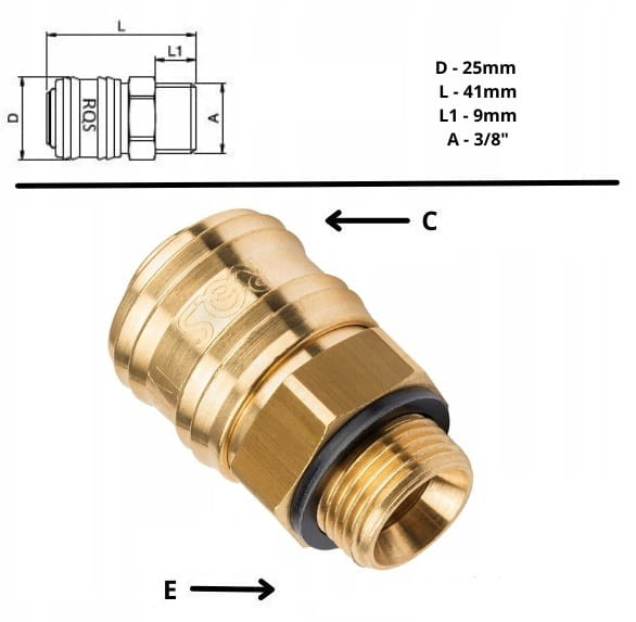 - Strona C- Standardowe szybkozłącze stosowane w większości narzędzi pneumatycznych i węży