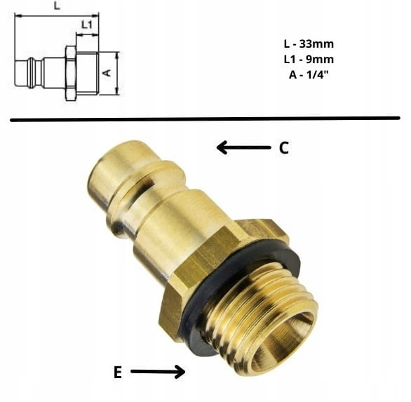 - Strona E - Gwint zewnętrzny 1/4" Cala = 13,2mm