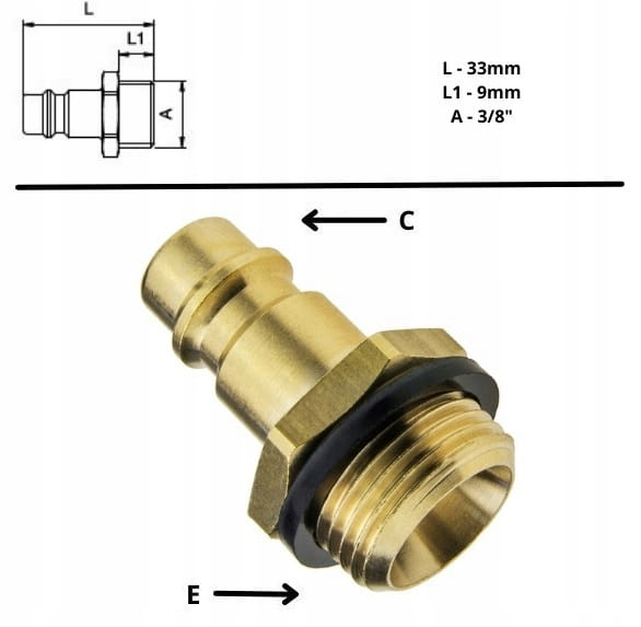 - Strona E - Gwint zewnętrzny 3/8" Cala = 16,7mm