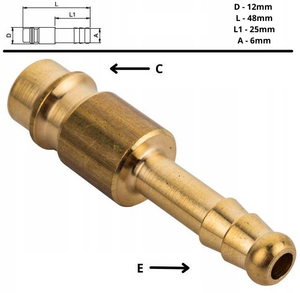 - Strona E - Wtyk do węża o średnicy wewnętrznej 6 mm