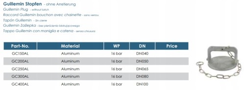 Złącze GUILLEMIN Zaślepka korek 3'' Alu